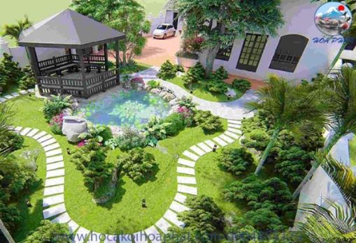 - Phong cách Nhật Bản: Tận dụng đá, sỏi, hồ cá Koi và cây bonsai để tạo không gian thiền định, tối giản nhưng sâu lắng.