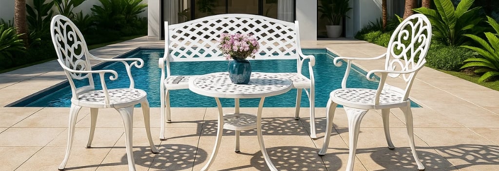 Nhôm đúc là một loại hợp kim kim loại phổ biến thường được sử dụng trong sản xuất các sản phẩm như: dụng cụ ăn uống và ngoại thất. Trước khi sử dụng, nhôm còn phải trải qua một quá trình gọi là đúc. Đúc được thực hiện để tăng cường độ cứng và độ bền của vật liệu. Nhôm đúc vượt trội hơn các vật liệu thông thường khác: độ bền cao, trọng lượng nhẹ, khả năng chống ăn mòn tốt và chi phí bảo trì thấp. Chính những đặc tính này khiến nhôm đúc trở thành lựa chọn hàng đầu cho các sản phẩm bàn ghế ngoài trời – nơi thường xuyên tiếp xúc với thời tiết khắc nghiệt.