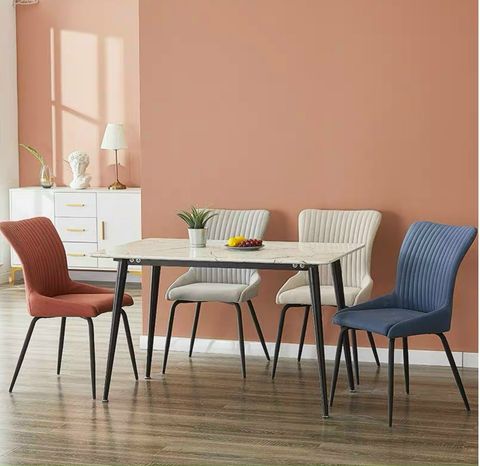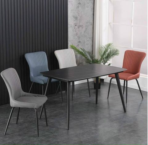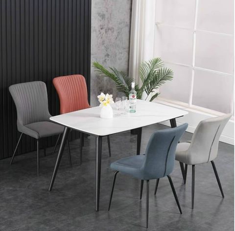 Chất liệu: Mặt bàn đá Ceramic, chân sắt sơn tĩnh điện bọc núm đồng