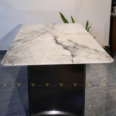 Chất liệu: Mặt đá bạch ngọc tinh thể. Khung inox mạ niken