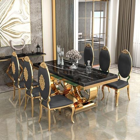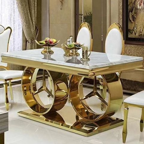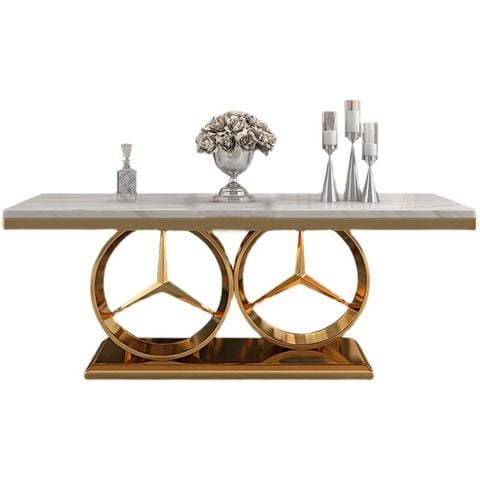 Bàn Ăn Inox Mạ Vàng Mặt Đá Mercedes (Không Bao Gồm Ghế)
