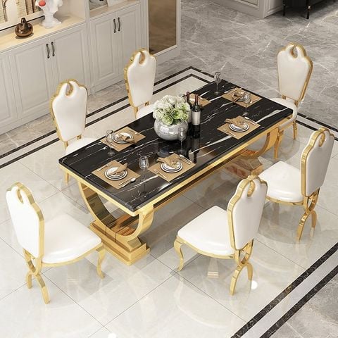 Bàn Ăn Inox Mạ Vàng Mặt Đá Venus (Không Bao Gồm Ghế)