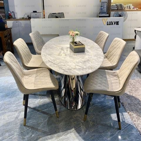 Chất liệu: Mặt đá cao cấp marble. Khung inox 201 tráng gương
