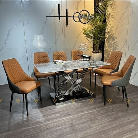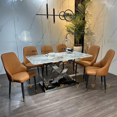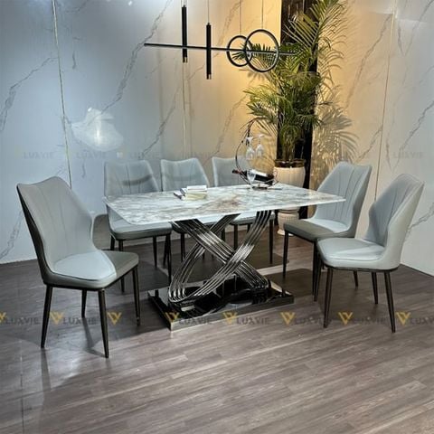 Tên sản phẩm: Bàn ăn inox tráng gương mặt đá Fiber2 (không gồm ghế)