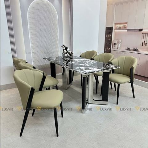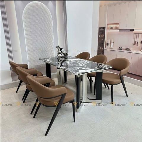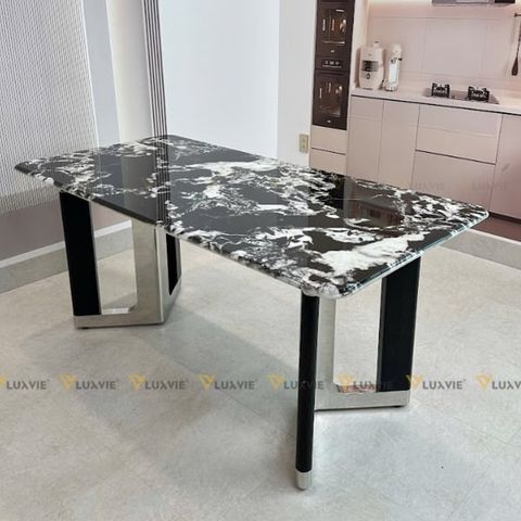 Tên sản phẩm: Bàn ăn inox tráng gương mặt đá Flumiese (không gồm ghế)