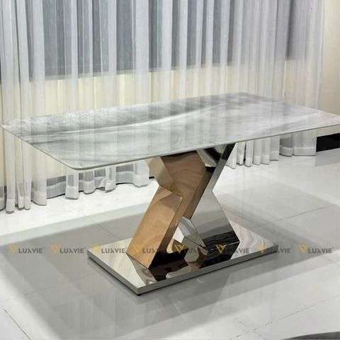 Tên sản phẩm: Bàn ăn inox tráng gương mặt đá Irene (không gồm ghế)