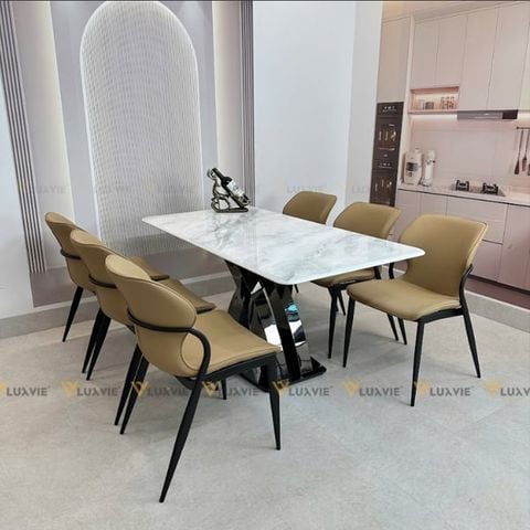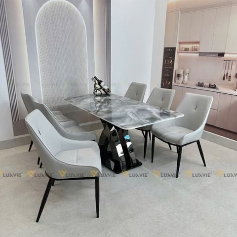 Tên sản phẩm: Bàn ăn inox tráng gương mặt đá Jiannis (không gồm ghế)