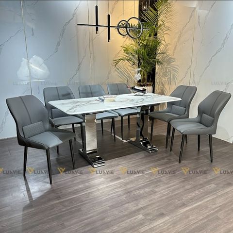 Tên sản phẩm: Bàn ăn inox tráng gương mặt đá Lumiere (không gồm ghế)