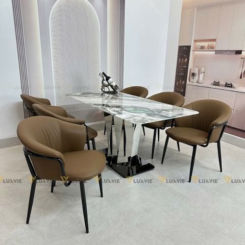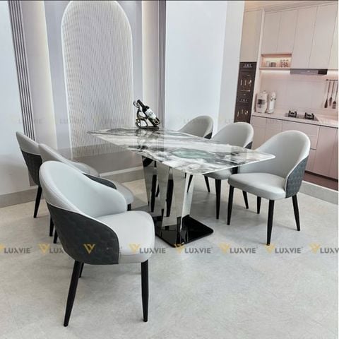 Tên sản phẩm: Bàn ăn inox tráng gương mặt đá Malisa (không gồm ghế)