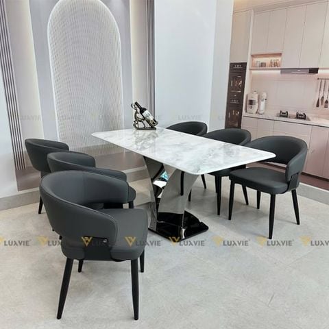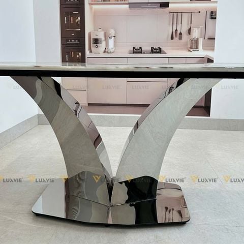 Tên sản phẩm: Bàn ăn inox tráng gương mặt đá Vancouver (không gồm ghế)