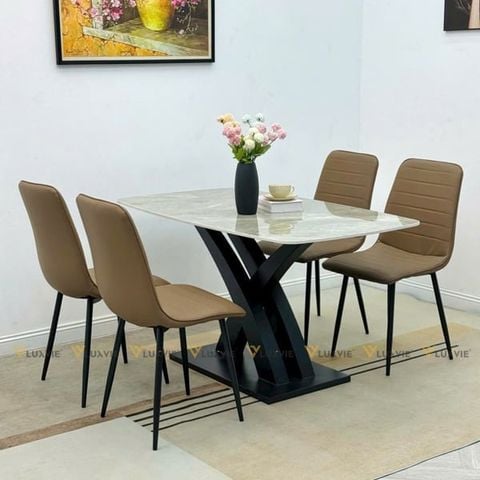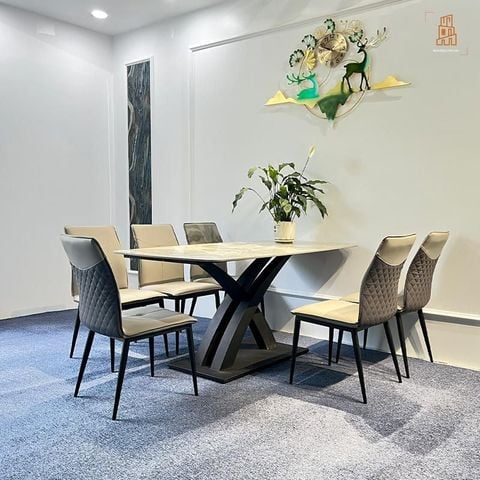 Chất liệu: Mặt đá cao cấp Ceramic, chân sắt sơn tĩnh điện
