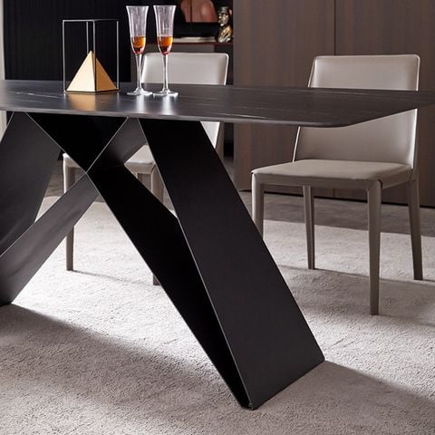 Chất liệu cao cấp: Mặt bàn được làm từ đá Ceramic cao cấp, nổi bật với khả năng chống trầy xước và dễ dàng vệ sinh. Đá Ceramic không chỉ tạo ra một bề mặt đẹp mắt và hiện đại mà còn đảm bảo độ bền vượt trội, giúp bàn ăn luôn giữ được vẻ mới mẻ qua thời gian. Chân bàn được làm từ sắt sơn tĩnh điện, đảm bảo sự ổn định và độ bền cao. Sơn tĩnh điện cũng giúp bảo vệ chân bàn khỏi sự ăn mòn và mang lại vẻ ngoài bóng mượt, tinh tế.