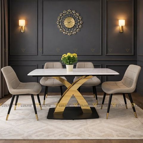 Chất liệu: Mặt đá cao cấp Ceramic, chân inox 201 mạ pvd / inox 304 mạ pvd
