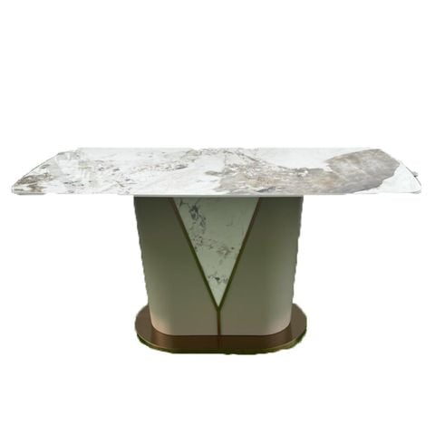 Chất liệu: Mặt đá cao cấp Ceramic. Đế bàn inox mạ, Thân gỗ ép nhiệt sơn tĩnh điện.