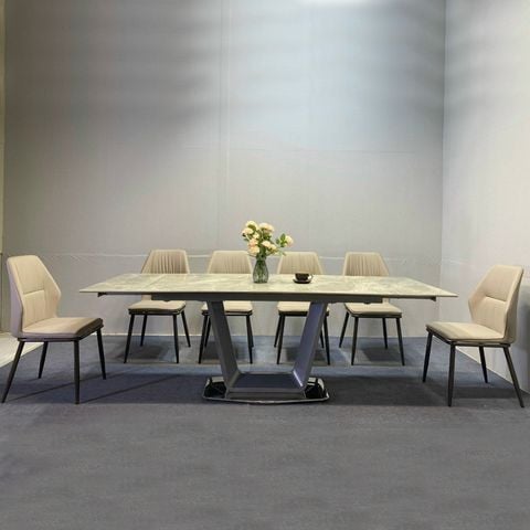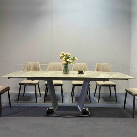Chất liệu Ceramic cao cấp đảm bảo độ bền và khả năng chịu lực tốt, đồng thời dễ dàng vệ sinh, giữ cho bàn ăn luôn mới mẻ và sạch sẽ. Chân bàn bằng sắt sơn tĩnh điện không chỉ chắc chắn mà còn chống han gỉ, đảm bảo sự ổn định và an toàn trong quá trình sử dụng.
