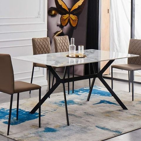 Chất liệu: Mặt bàn đá Ceramic, chân sắt sơn tĩnh điện