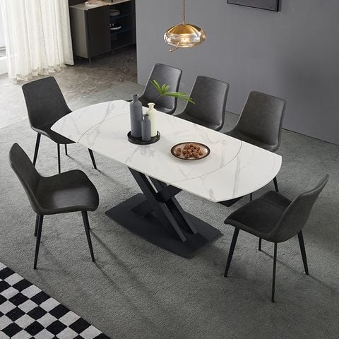 Chất liệu Ceramic không chỉ đảm bảo độ bền và khả năng chịu lực tốt mà còn dễ dàng vệ sinh, giữ cho bàn ăn luôn mới mẻ và sạch sẽ. Chân bàn chắc chắn và bền bỉ, đảm bảo sự ổn định và an toàn trong quá trình sử dụng.