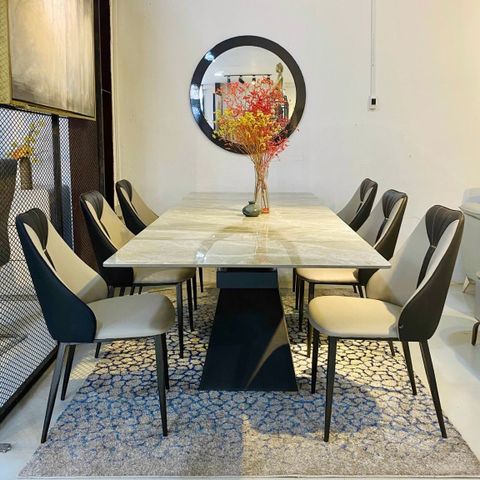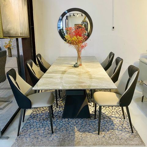 Chất liệu: Mặt bàn Ceramic dày 9 li, chân sắt sơn tĩnh điện