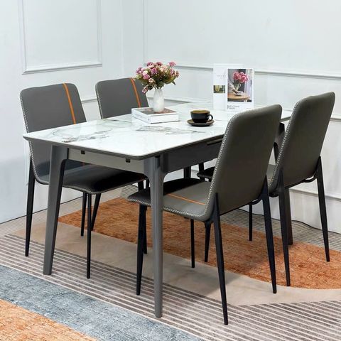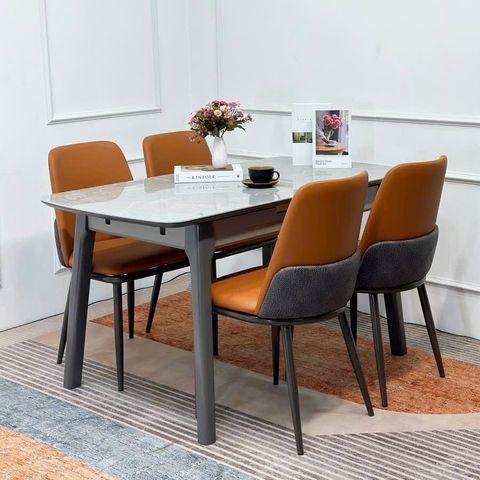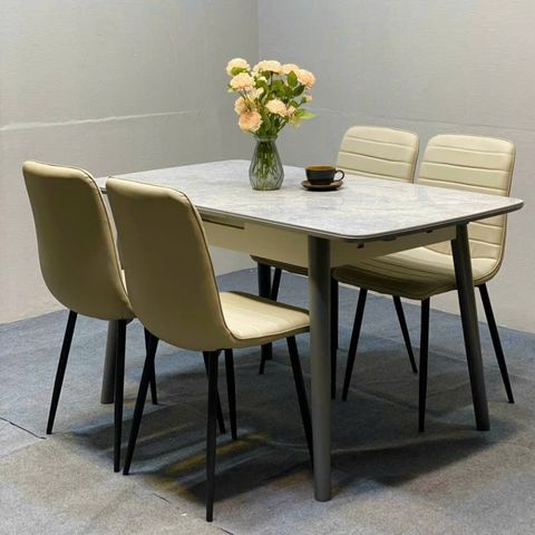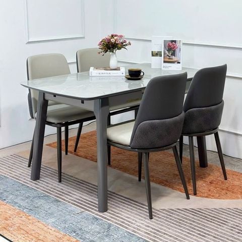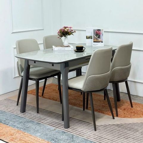 Bàn ăn có kích thước 1100*700 mở rộng 1400, phù hợp với những gia đình có 4 - 6 thành viên. Mặt bàn được làm từ đá Ceramic cao cấp, có độ cứng cao, chống trầy xước, chống bám bẩn và dễ dàng vệ sinh. Khung bàn được làm từ gỗ công nghiệp cao cấp, chắc chắn và bền bỉ.
