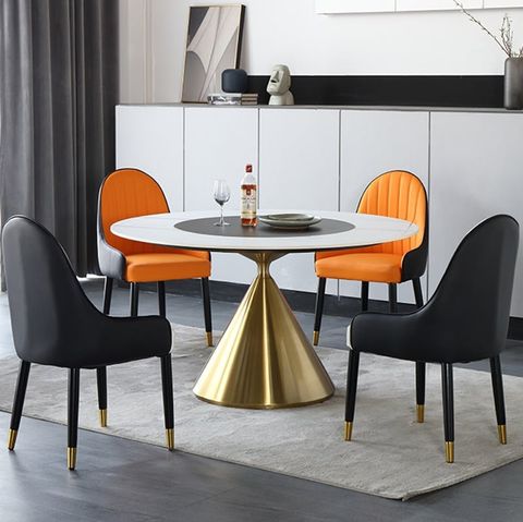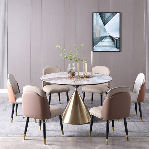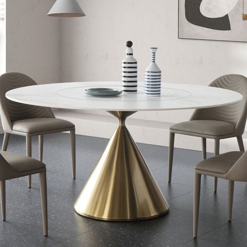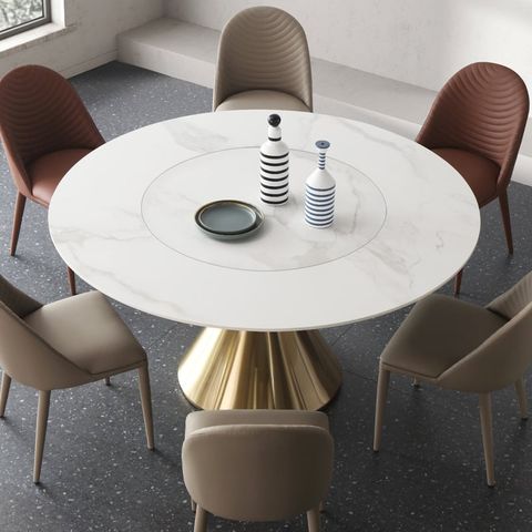 Bàn Ăn Tròn Thông Minh Chân Inox Mạ Đồng Mặt Đá Bonny (Không Bao Gồm Ghế)