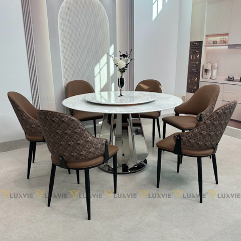Chất liệu: Mặt bàn đá cẩm thạch, chân inox