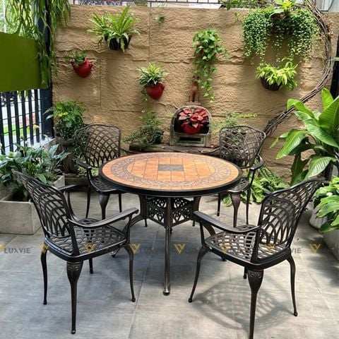 Tên sản phẩm: Bàn nhôm đúc ngoài trời mặt đá BND100M (không gồm ghế)