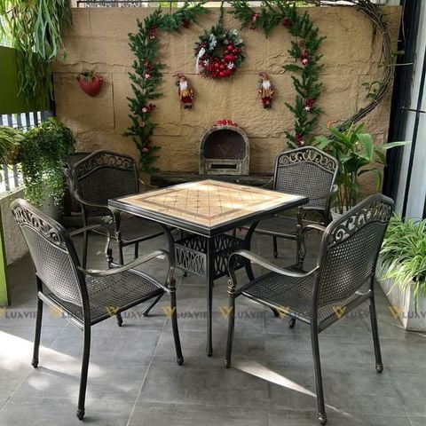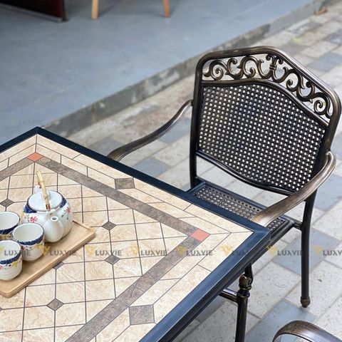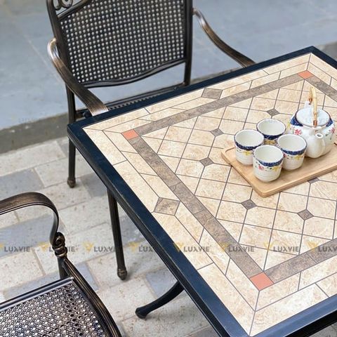 Tên sản phẩm: Bàn nhôm đúc ngoài trời mặt đá BNV80M (không gồm ghế)
