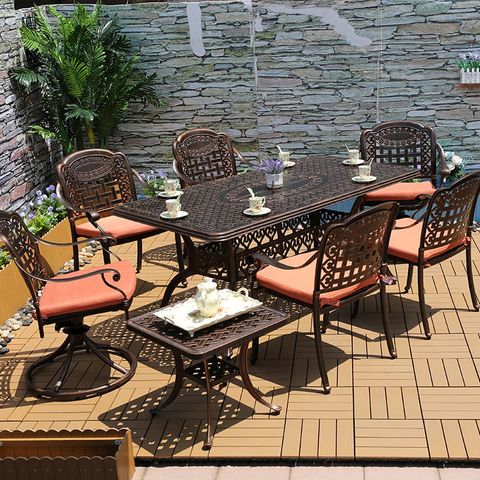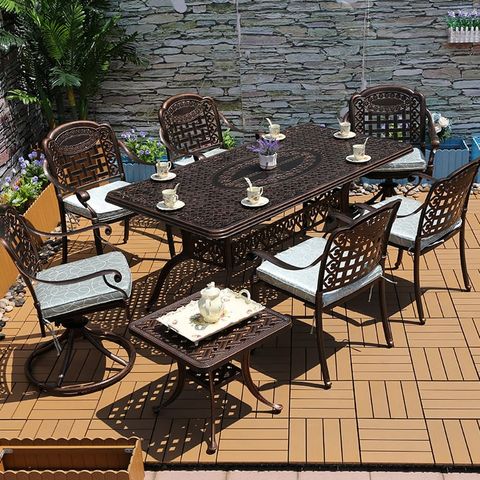 Bàn sân vườn có hai tùy chọn màu sắc thanh lịch: trắng và đồng. Màu trắng mang đến vẻ đẹp sạch sẽ và hiện đại, dễ dàng phối hợp với nhiều phong cách trang trí khác nhau, từ cổ điển đến hiện đại. Màu đồng, với sắc thái ấm áp và sang trọng, tạo điểm nhấn nổi bật và tinh tế cho không gian ngoài trời của bạn. Sự đa dạng màu sắc này giúp bạn dễ dàng kết hợp bàn với các loại ghế và phụ kiện khác, tạo nên một không gian ngoài trời hài hòa và phong cách.