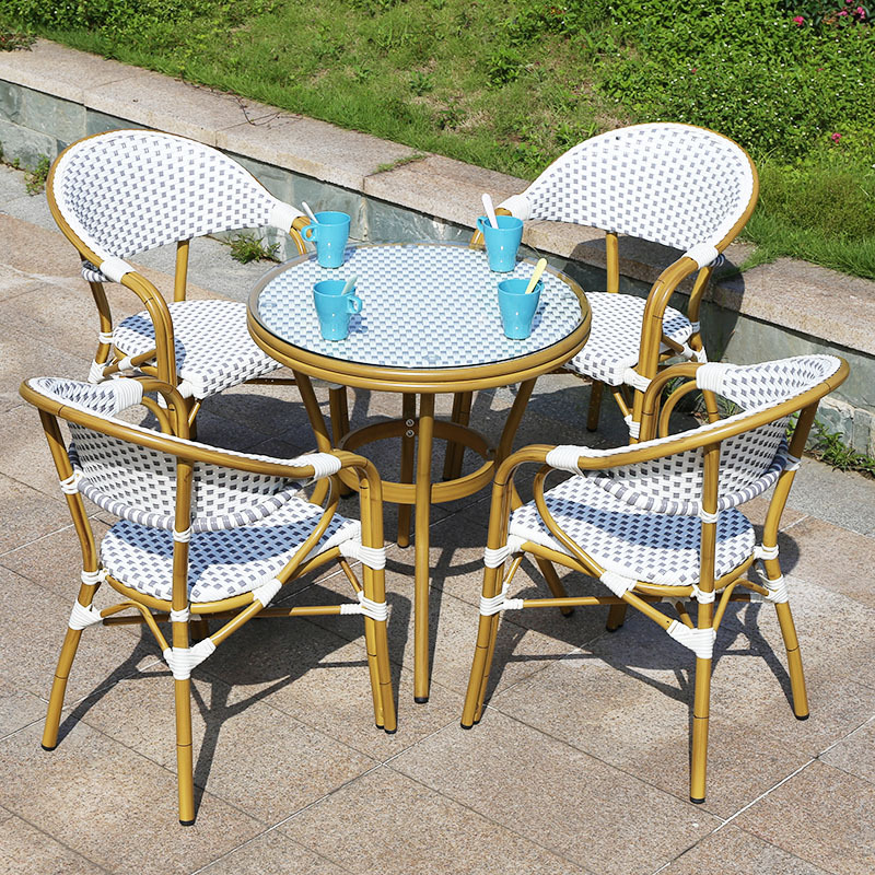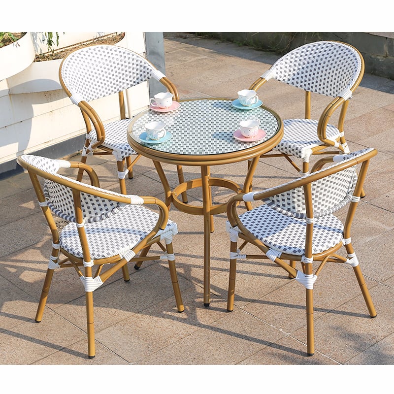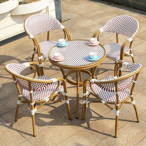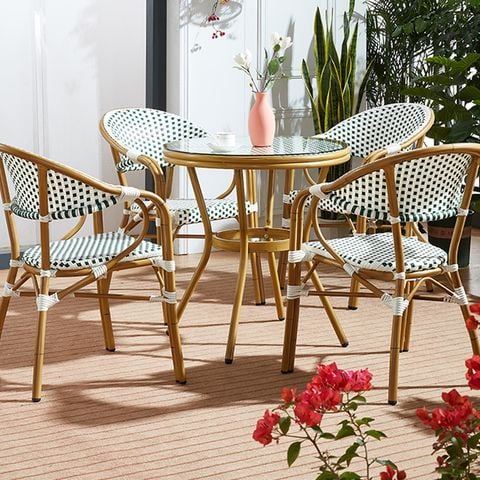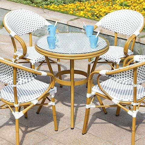 Chất liệu: Khung nhôm đúc, mặt bàn nhựa giả mây