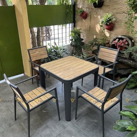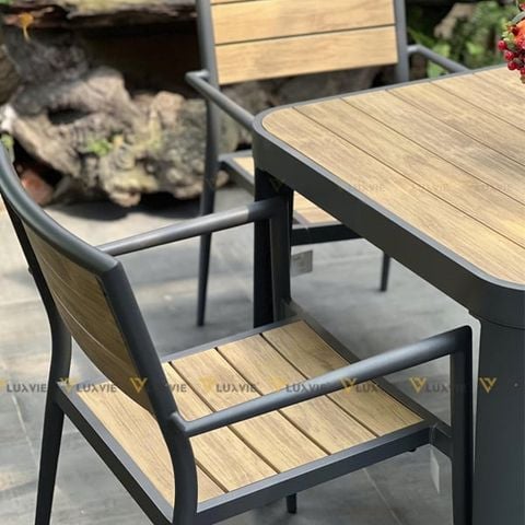 Chất liệu: Khung nhôm sơn tĩnh điện + nan Polywood giả gỗ