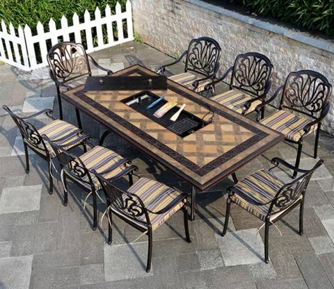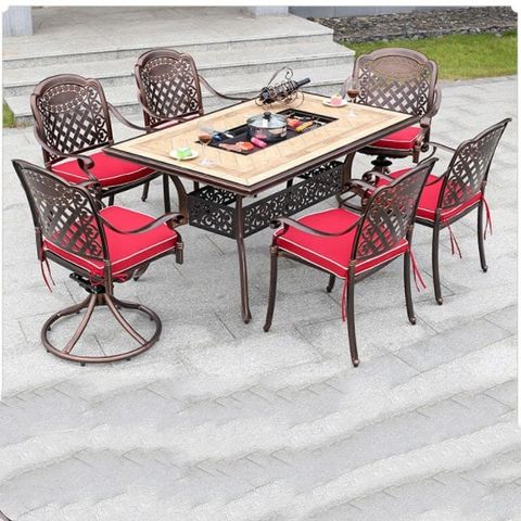 Bàn sân vườn chữ nhật mặt đá có bếp nướng là sự lựa chọn hoàn hảo để nâng tầm không gian ngoài trời của bạn, kết hợp giữa thiết kế sang trọng và tính năng tiện ích. Với kích thước rộng rãi và các tính năng tích hợp, bàn nhôm ngoài trời mang đến trải nghiệm ăn uống ngoài trời đầy thoải mái và tiện lợi.