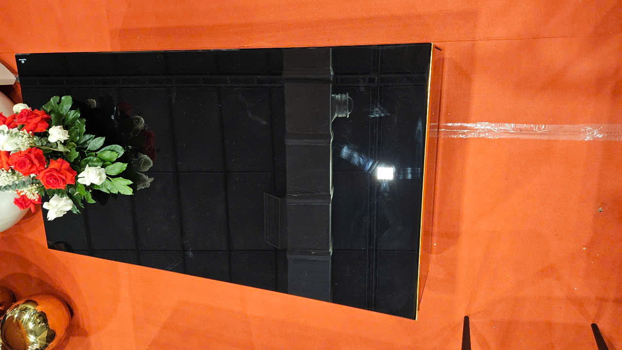 Chất liệu: Mặt kính cao cấp, khung gỗ MDF nẹp inox mạ titan