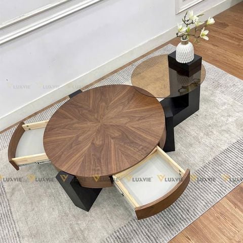 Chất liệu: Khung gỗ MDF, mặt gỗ + kính