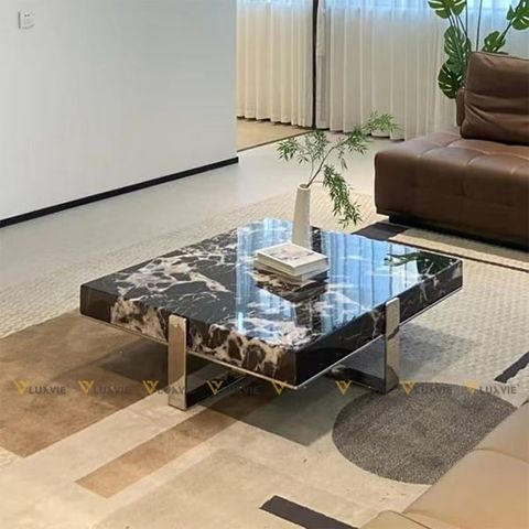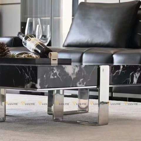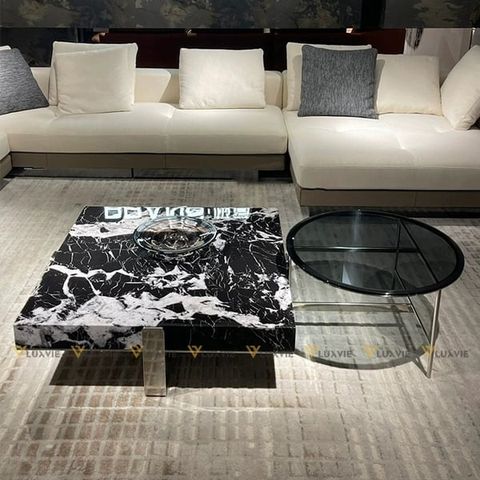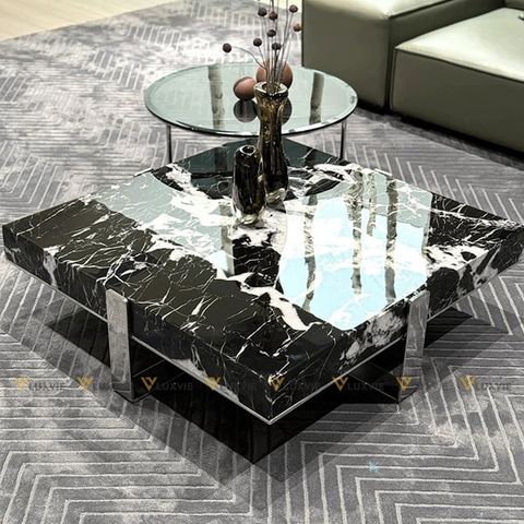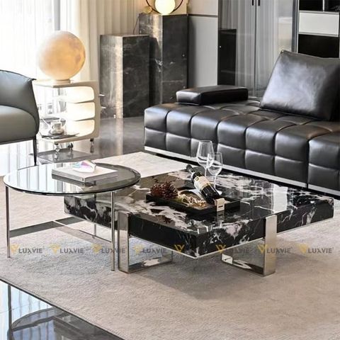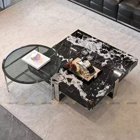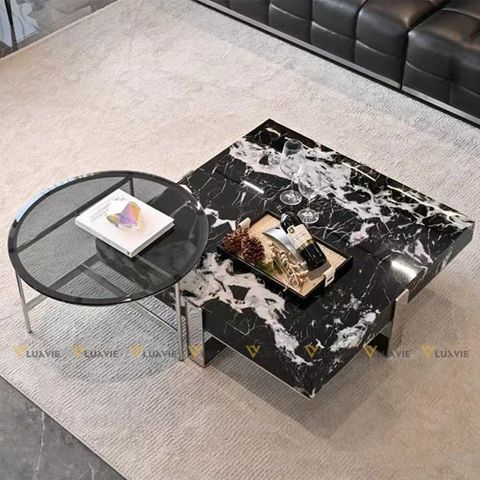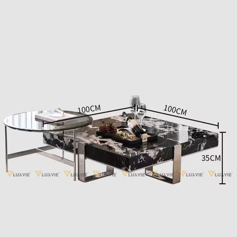 Chất liệu: Bàn lớn đá marble cao cấp, bàn nhỏ mặt kính, khung inox mạ