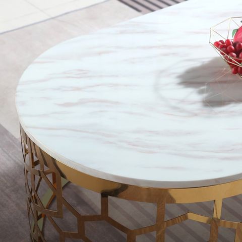 Chất liệu: Mặt đá ceramic, chân inox mạ vàng