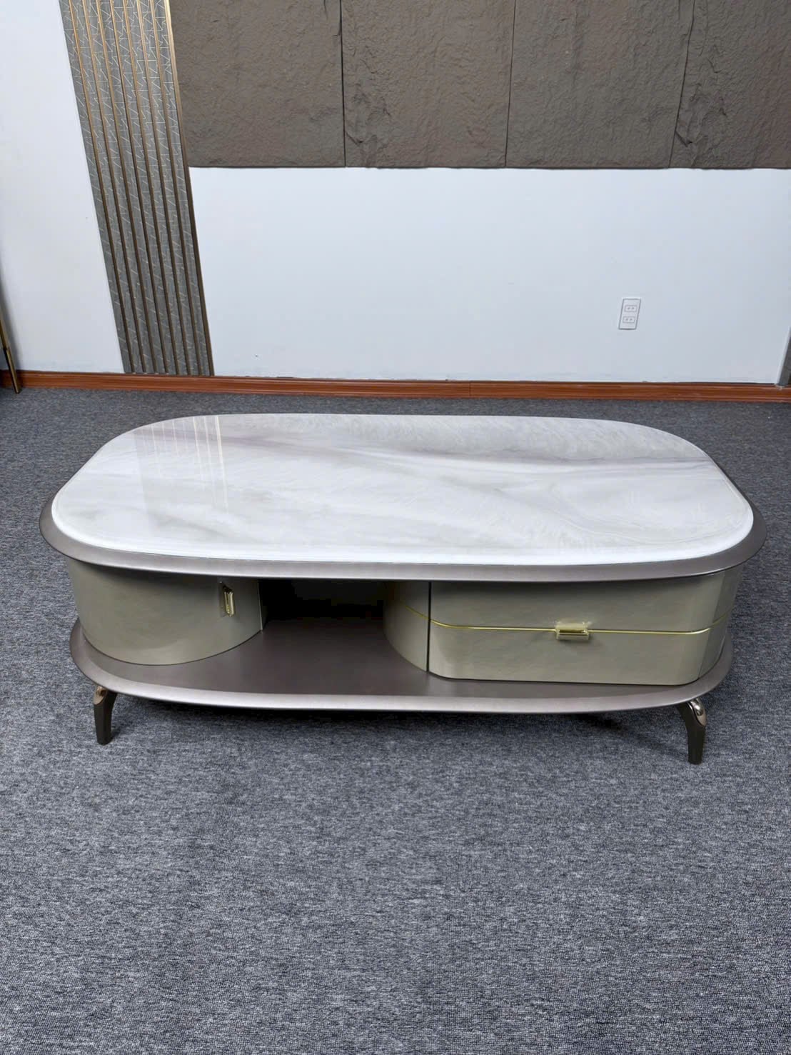 Chất liệu: Khung gỗ MDF, Mặt đá tinh thể