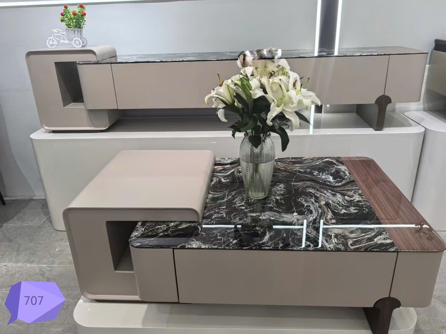 Chất liệu: Khung gỗ MDF, Mặt đá công nghệ + gỗ