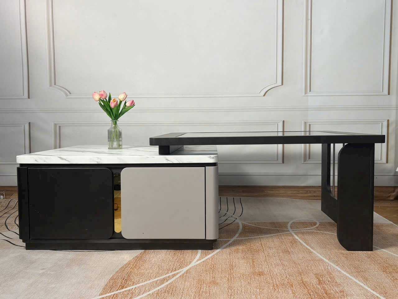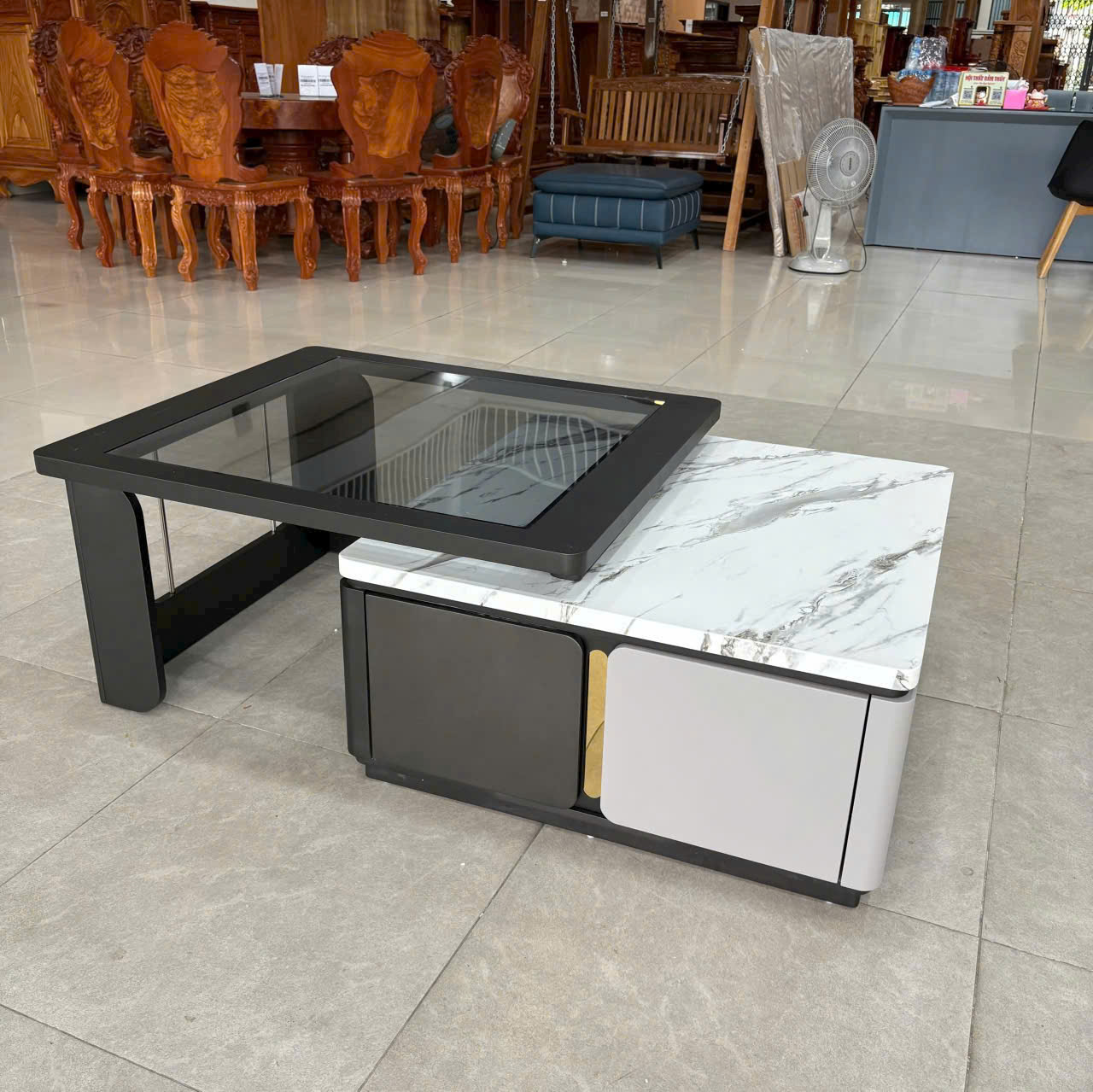 Chất liệu: Khung gỗ MDF, Mặt đá marble & kính