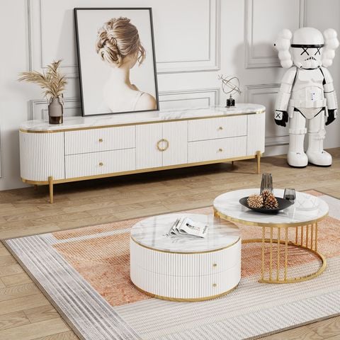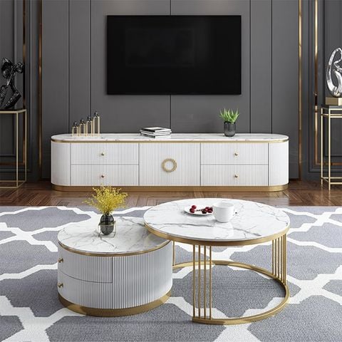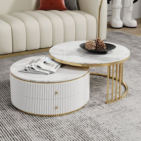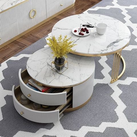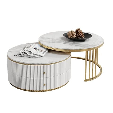 Tên sản phẩm: Bàn trà tròn mặt đá 2 ngăn kéo DPBC04