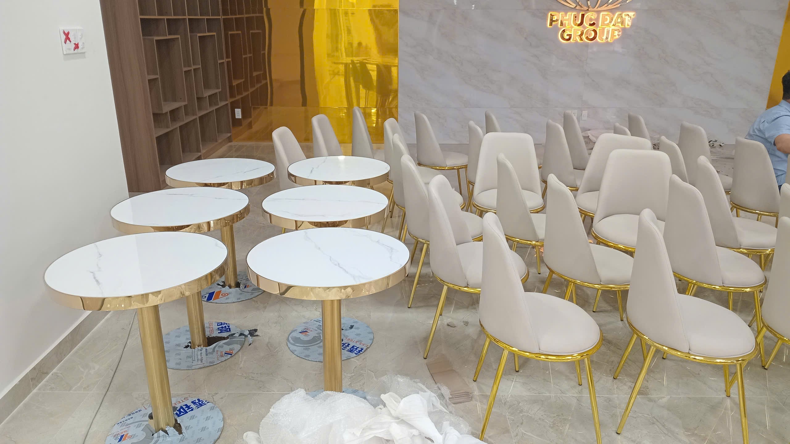 Bàn tròn chân inox mạ vàng này phù hợp cho nhiều loại không gian, bao gồm quán cafe, nhà hàng, phòng khách hoặc phòng làm việc. Thiết kế tinh tế và chất liệu cao cấp giúp nâng cao giá trị thẩm mỹ của không gian, đồng thời đáp ứng nhu cầu sử dụng hàng ngày.