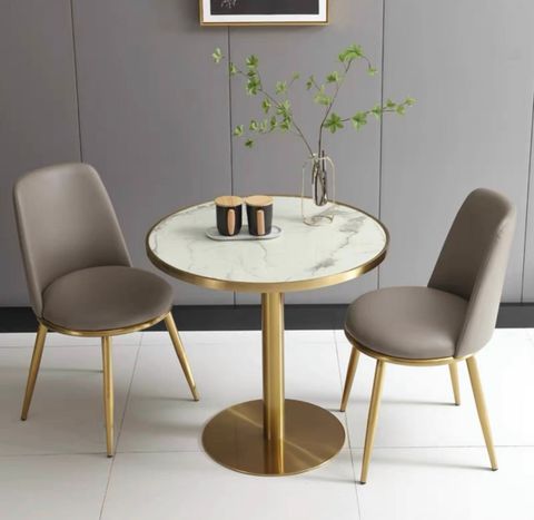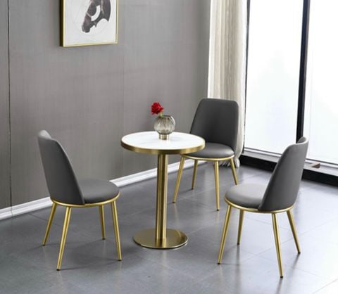 Tên sản phẩm: Bàn tròn chân inox mạ vàng DPB28 (không gồm ghế)