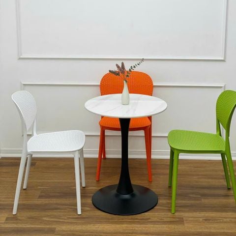 Với mặt bàn tròn được làm từ đá Ceramic cao cấp, Bàn Tròn Tulip Mặt Đá tạo nên một bề mặt nhẵn bóng, sang trọng, dễ dàng vệ sinh và chống trầy xước. Đặc biệt, chất liệu đá Ceramic còn giúp bàn chống thấm nước, bền bỉ theo thời gian. Kết hợp với chân sắt sơn tĩnh điện chắc chắn, bàn Tulip mang đến sự ổn định và an toàn khi sử dụng.