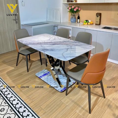 Chất liệu bàn: Mặt đá cao cấp marble. Khung inox 201 tráng gương