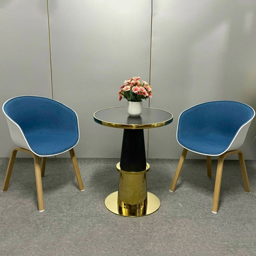 Chất liệu bàn: Mặt đá gốm, khung inox mạ vàng, và sắt sơn