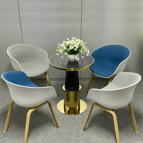 Chất liệu ghế: Lưng ghế nhựa PP bọc vải, mặt ngồi êm ái, chân ghế sắt sơn giả gỗ