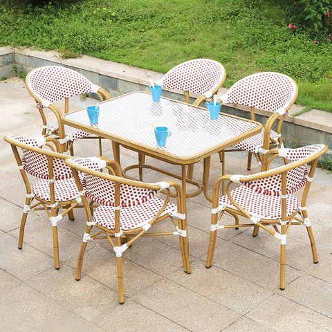 Mặt bàn và lưng ghế được làm từ nhựa giả mây, một chất liệu nổi bật với khả năng chống thấm nước, chống phai màu và không bị ảnh hưởng bởi nhiệt độ cao. Nhựa giả mây không chỉ mang lại vẻ đẹp tự nhiên, gần gũi mà còn dễ dàng vệ sinh, bảo dưỡng, giúp bộ bàn ghế luôn như mới sau thời gian dài sử dụng. Đây là sự kết hợp hoàn hảo giữa thẩm mỹ và tính ứng dụng, mang lại giá trị sử dụng cao cho người tiêu dùng.
