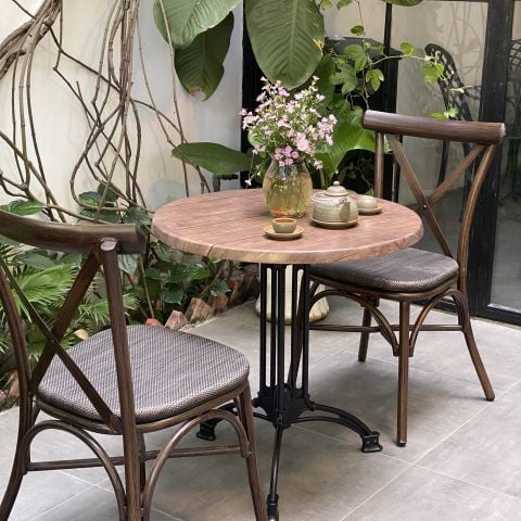 Chất liệu: Bàn TG được chế tạo với chân nhôm đúc sơn tĩnh điện, mang lại độ bền cao và khả năng chống gỉ sét. Mặt bàn bằng gỗ phủ Resin không chỉ tạo nên vẻ đẹp tự nhiên mà còn bảo vệ bề mặt khỏi các yếu tố thời tiết, dễ dàng vệ sinh và bảo trì.
