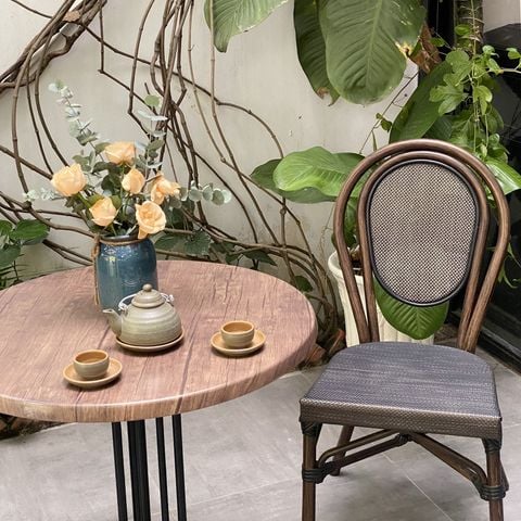 Chất liệu: Bàn TG được làm từ chân nhôm đúc sơn tĩnh điện, mang lại độ bền và khả năng chống gỉ sét cao. Mặt bàn bằng gỗ phủ Resin không chỉ tạo nên vẻ đẹp sang trọng mà còn bảo vệ bề mặt khỏi các yếu tố thời tiết, giúp bàn dễ dàng vệ sinh và bảo trì.