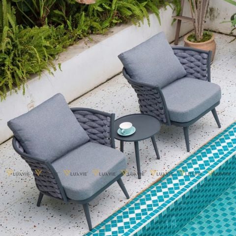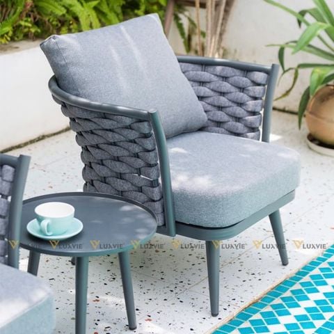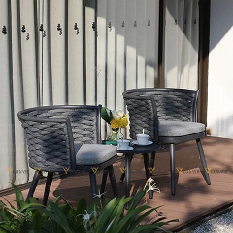 Chất liệu ghế: Khung nhôm đúc sơn tĩnh điện chống gỉ sét, Đan dây Rope