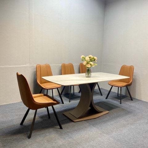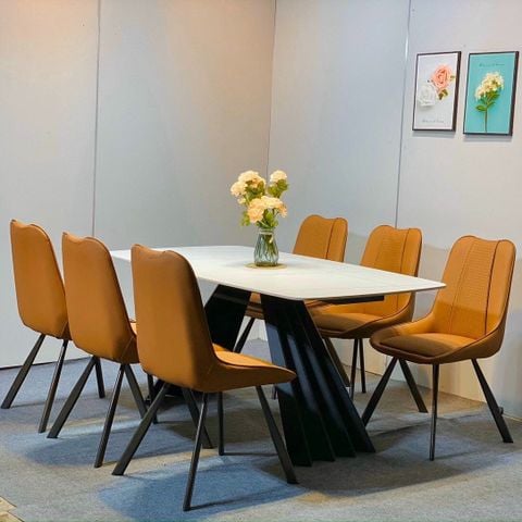 Ghế ăn Vila có thiết kế hiện đại với đường nét đơn giản nhưng không kém phần tinh tế. Phần mặt ghế được bọc da công nghiệp cao cấp, mang đến cảm giác mềm mại và dễ chịu khi sử dụng. Chân ghế làm từ sắt sơn tĩnh điện, kết hợp với bề mặt da tạo nên một tổng thể hài hòa và thanh thoát.
